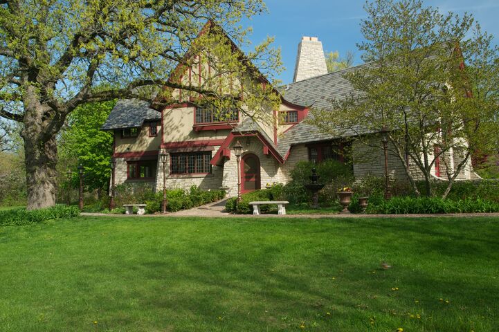 From the parking lot, walk to the circle drive with the